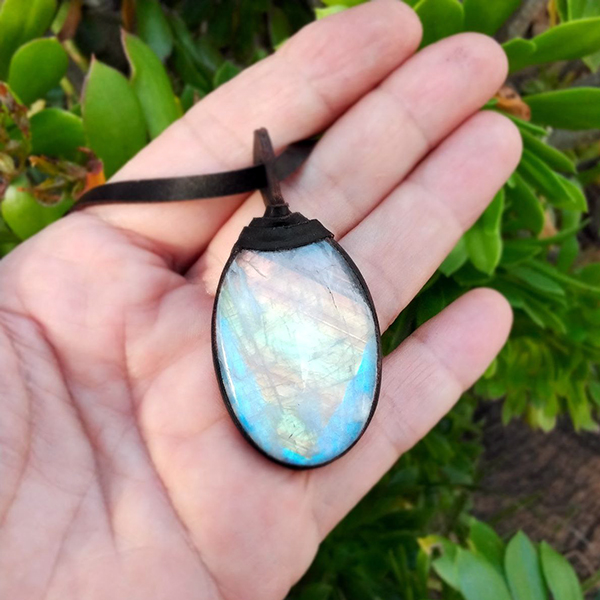 Colgante de impresionante ejemplar de Piedra de Luna con una iridiscencia sin igual