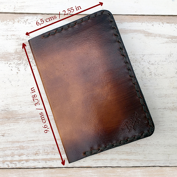 La mayoría de los pedidos con colores no básicos (colores especiales), los artículos hechos a medida y productos personalizados no se pueden devolver y no son reembolsables.Como todos nuestros productos, este artículo está hecho 100% a mano y cosido a mano con cuero de becerro español de curtido vegetal (SIN CROMO). Este tarjetero en particular está confeccionado con piel de becerro de 0,8 mm de grosor. Costura reforzada, a mano, con hilo encerado de 1.5mm de grosor.La piel genuina tiene características propias como venas, cicatrices o variaciones de tono, que resaltan su pureza y ratifican su autenticidad.